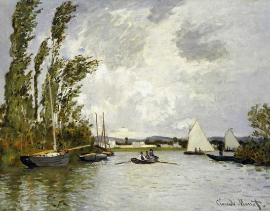 The Seine at Argenteuil White Modern Wood Framed Art Print with Double Matting by Monet, Claude