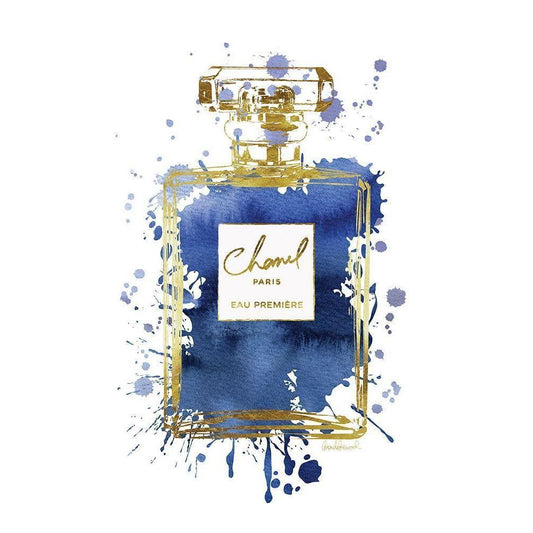 Silver Inky Perfume in Navy Gold Ornate Wood Framed Art Print with Double Matting by Greenwood, Amanda
