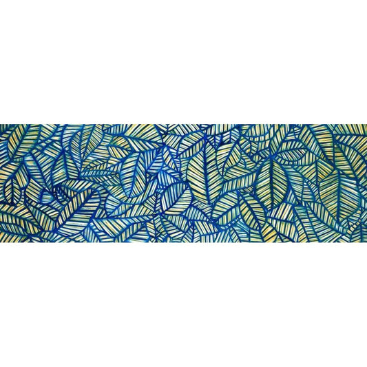 Tropical Abstract Blue Leaves Gold Ornate Wood Framed Art Print with Double Matting by Atelier B Art Studio