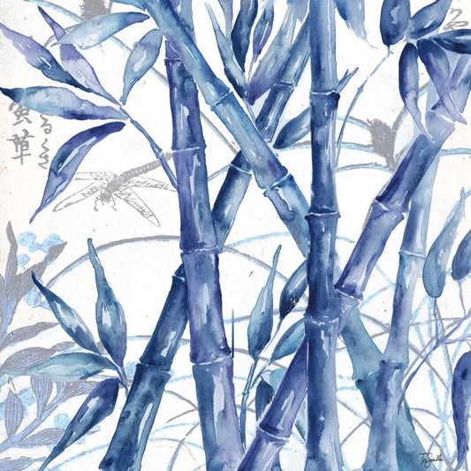 Indigo Asian Bamboo Panel II Gold Ornate Wood Framed Art Print with Double Matting by Tre Sorelle Studios