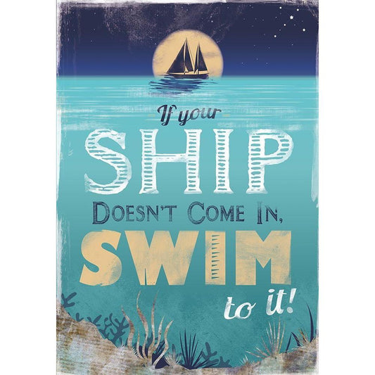 Swim to Your Ship Gold Ornate Wood Framed Art Print with Double Matting by JMB Designs