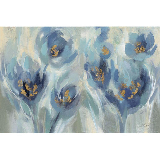 Blue Fairy Tale Floral III Light Gold Ornate Wood Framed Art Print with Double Matting by Vassileva, Silvia