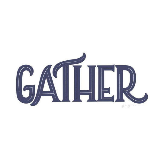 Farmhouse Gather Navy Gold Ornate Wood Framed Art Print with Double Matting by Graham, Gia
