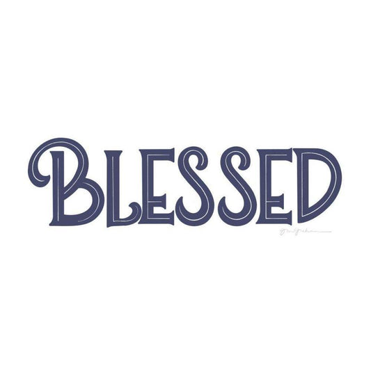 Farmhouse Blessed Navy Gold Ornate Wood Framed Art Print with Double Matting by Graham, Gia