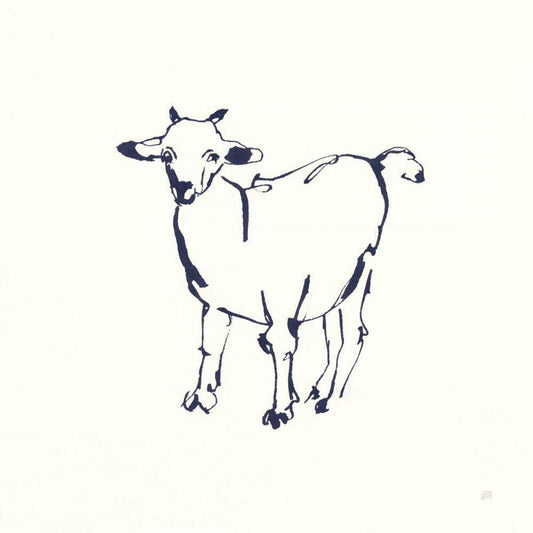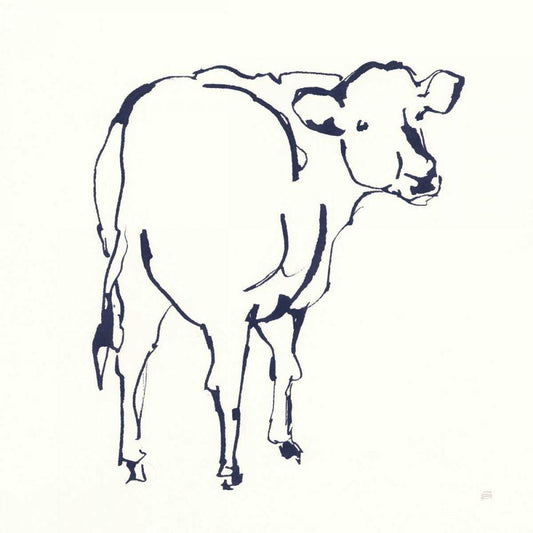 Line Cow Navy Gold Ornate Wood Framed Art Print with Double Matting by Paschke, Chris
