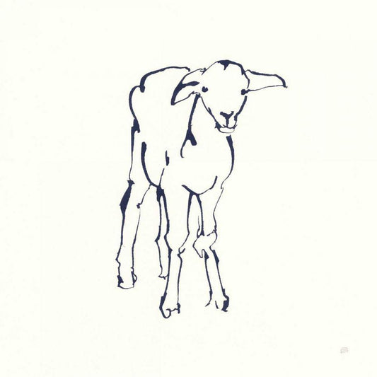 Line Lamb Navy Gold Ornate Wood Framed Art Print with Double Matting by Paschke, Chris