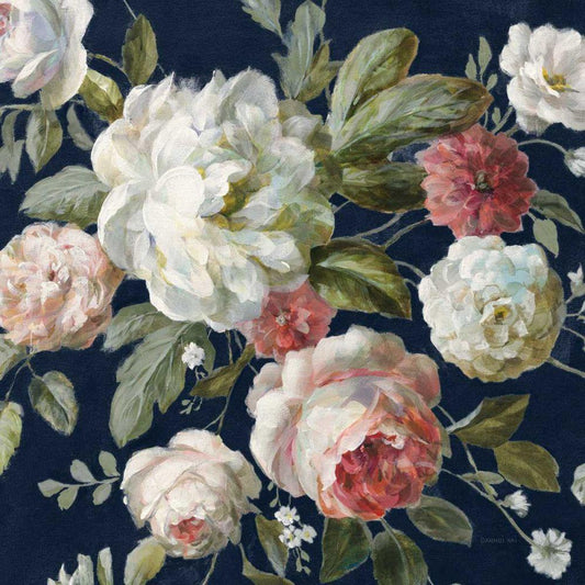 Gifts from the Garden Navy Crop Gold Ornate Wood Framed Art Print with Double Matting by Nai, Danhui