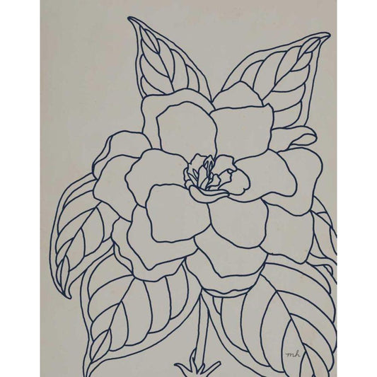Gardenia Line Drawing Gray Crop Gold Ornate Wood Framed Art Print with Double Matting by Hershey, Moira