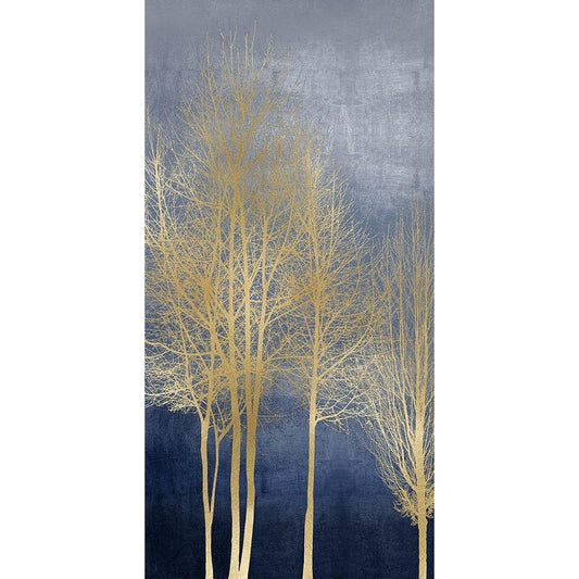 Gold Trees on Blue Panel II Gold Ornate Wood Framed Art Print with Double Matting by Bennett, Kate