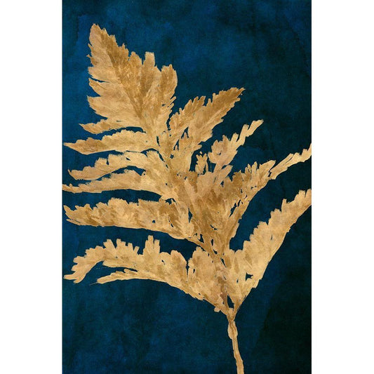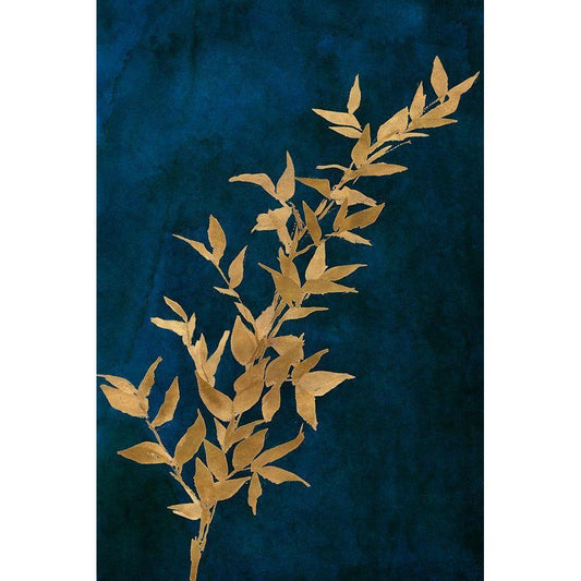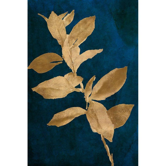 Simple Leaves on Navy Gold Ornate Wood Framed Art Print with Double Matting by Loreth, Lanie