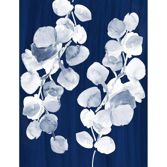 Eucalyptus Leaves on Navy Gold Ornate Wood Framed Art Print with Double Matting by Loreth, Lanie