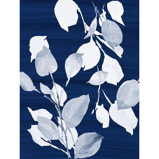 White Leaf on Navy II Gold Ornate Wood Framed Art Print with Double Matting by Loreth, Lanie