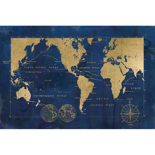 Indigo World Map Gold Ornate Wood Framed Art Print with Double Matting by Robinson, Carol
