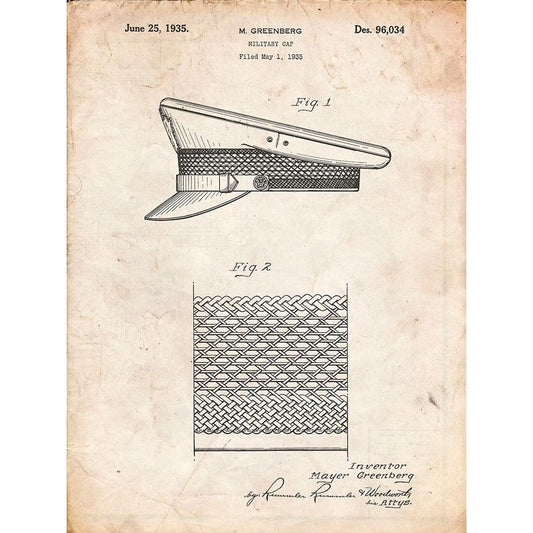 PP623-Vintage Parchment Military Hat 1935 Patent Poster Gold Ornate Wood Framed Art Print with Double Matting by Borders, Cole