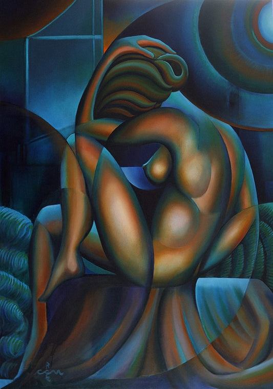 Homage to EugAune Durieua€™s Seated Female Nude a€“ 02-08-22 Black Ornate Wood Framed Art Print with Double Matting by Akkers, Corne