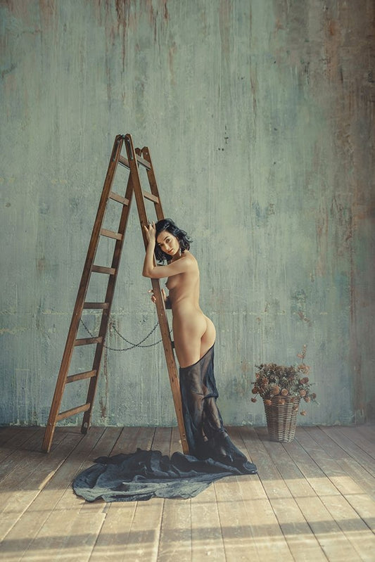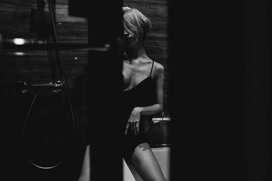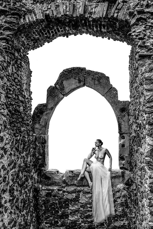 Woman Black Ornate Wood Framed Art Print with Double Matting by The Miuus Studio