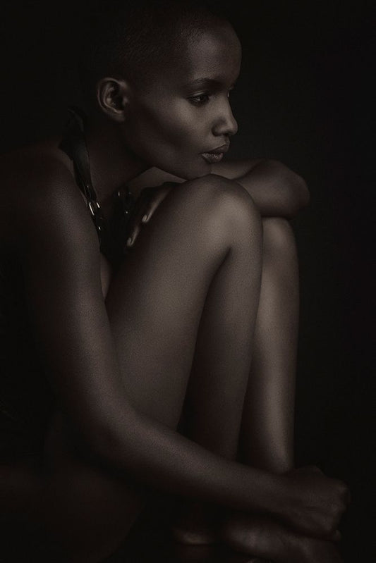 Anita Thoughtful (Part 1) Black Ornate Wood Framed Art Print with Double Matting by Lazzarotti, Paolo