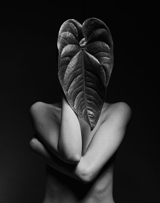Anna-Valeria With A Leaf Black Ornate Wood Framed Art Print with Double Matting by Kamenov, Stefan