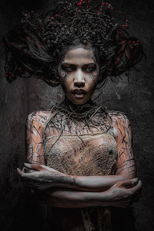 Spidergirl Black Ornate Wood Framed Art Print with Double Matting by Kaminski, Lukas