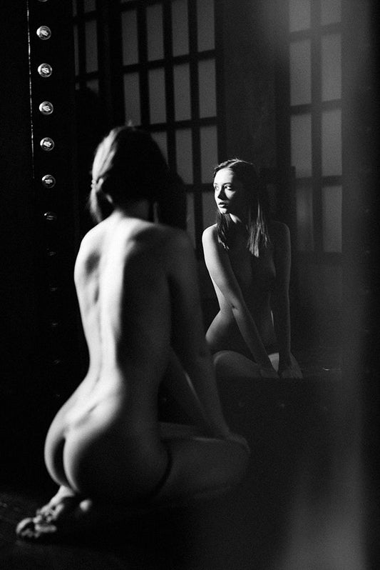 Lady In The Shower Black Ornate Wood Framed Art Print with Double Matting by Droste, Holger