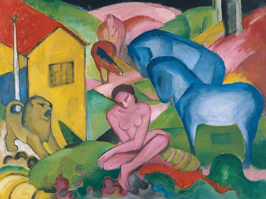 Nudes under Trees Black Ornate Wood Framed Art Print with Double Matting by Marc, Franz