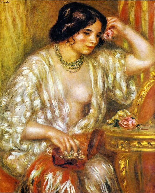 Gabrielle with Jewellery White Modern Wood Framed Art Print with Double Matting by Renoir, Pierre-Auguste