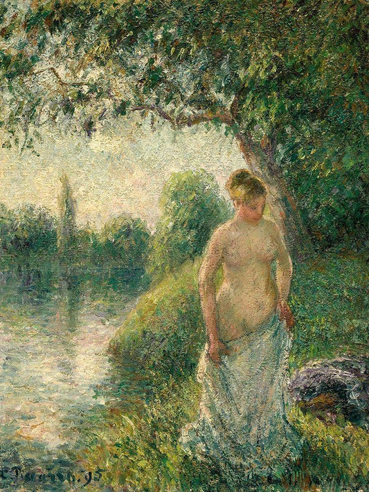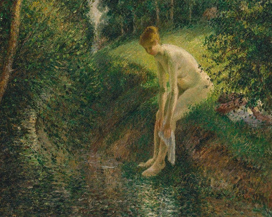Bather in the Woods White Modern Wood Framed Art Print with Double Matting by Pissarro, Camille