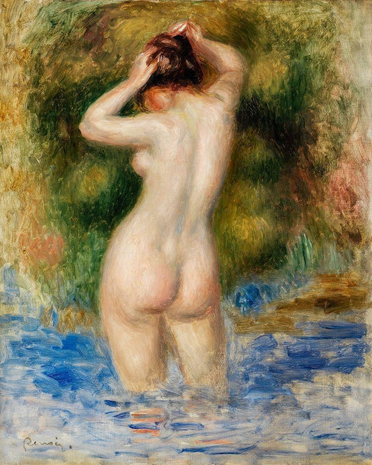 Bather 1891 White Modern Wood Framed Art Print with Double Matting by Renoir, Pierre-Auguste