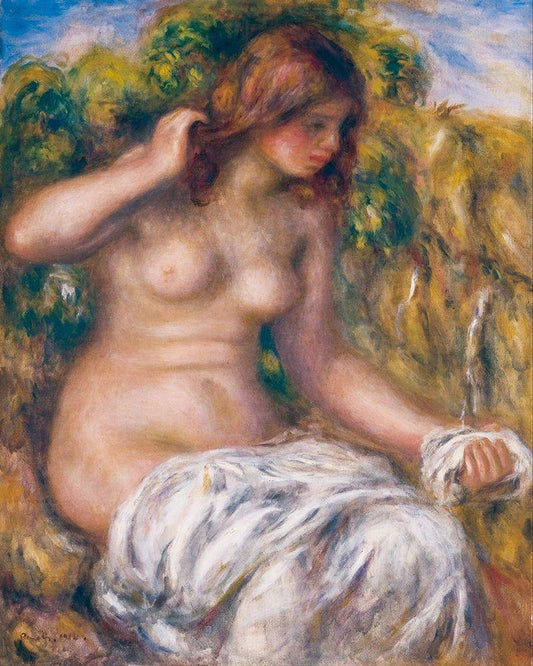 Seated Bather 1884 White Modern Wood Framed Art Print with Double Matting by Renoir, Pierre-Auguste