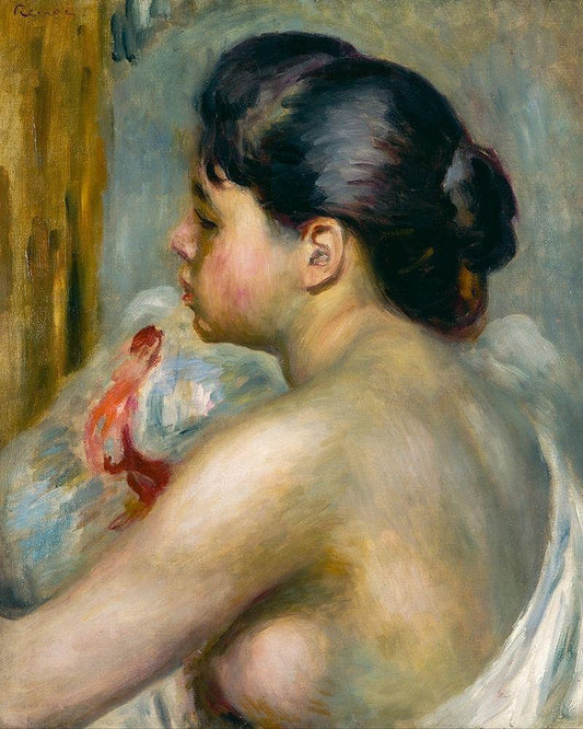 Gabrielle with open blouse White Modern Wood Framed Art Print with Double Matting by Renoir, Pierre-Auguste
