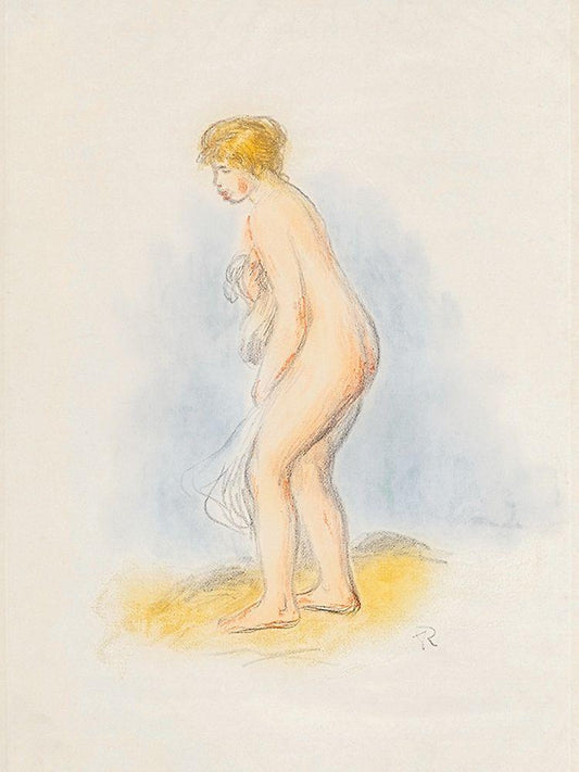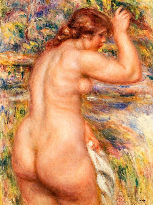 Bather in Three-Quarter View 1911 White Modern Wood Framed Art Print with Double Matting by Renoir, Pierre-Auguste