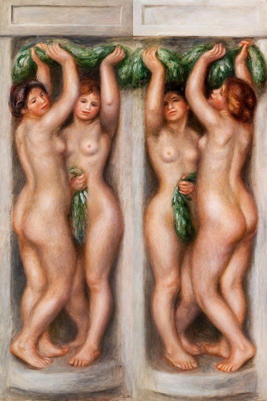 Caryatids White Modern Wood Framed Art Print with Double Matting by Renoir, Pierre-Auguste