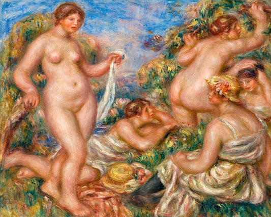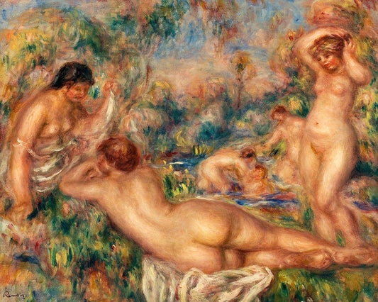 Bathers 1918 White Modern Wood Framed Art Print with Double Matting by Renoir, Pierre-Auguste