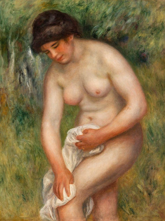 Bather 1895 White Modern Wood Framed Art Print with Double Matting by Renoir, Pierre-Auguste