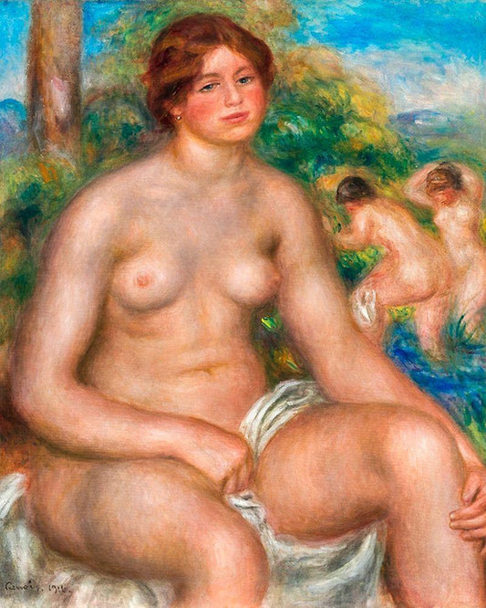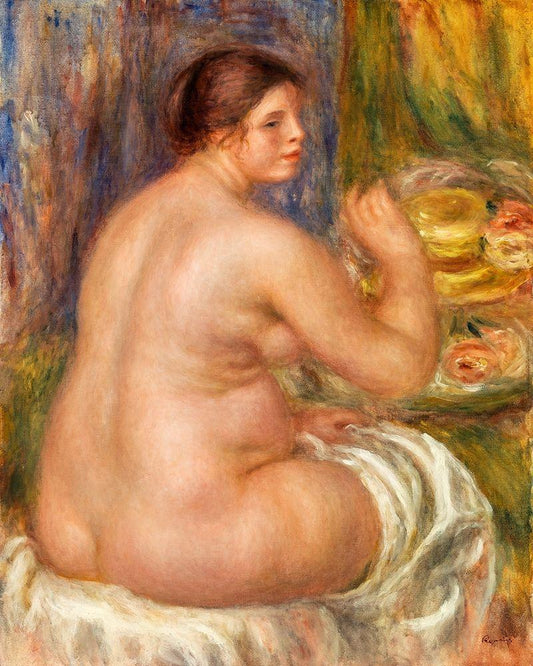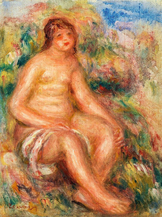 Seated Bather 1914 White Modern Wood Framed Art Print with Double Matting by Renoir, Pierre-Auguste