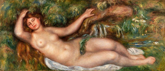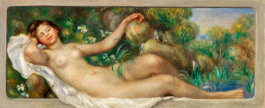 Nude in a Landscape 1917 White Modern Wood Framed Art Print with Double Matting by Renoir, Pierre-Auguste