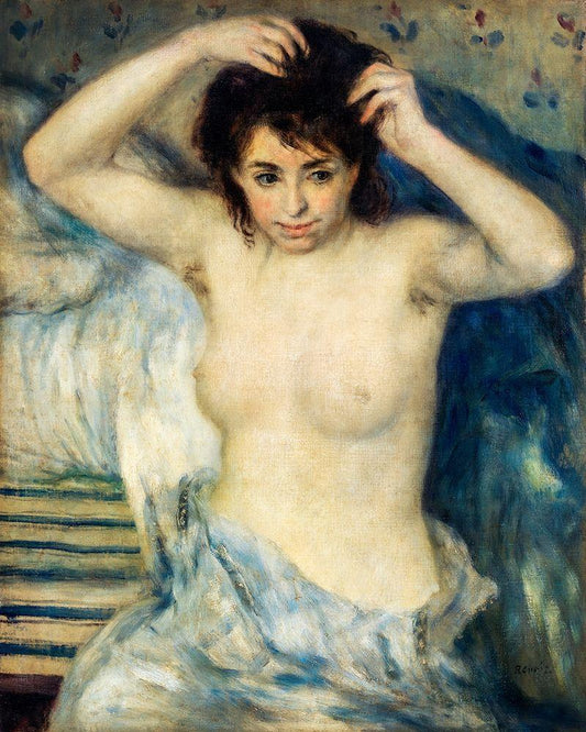 Before the Bath 1875 White Modern Wood Framed Art Print with Double Matting by Renoir, Pierre-Auguste