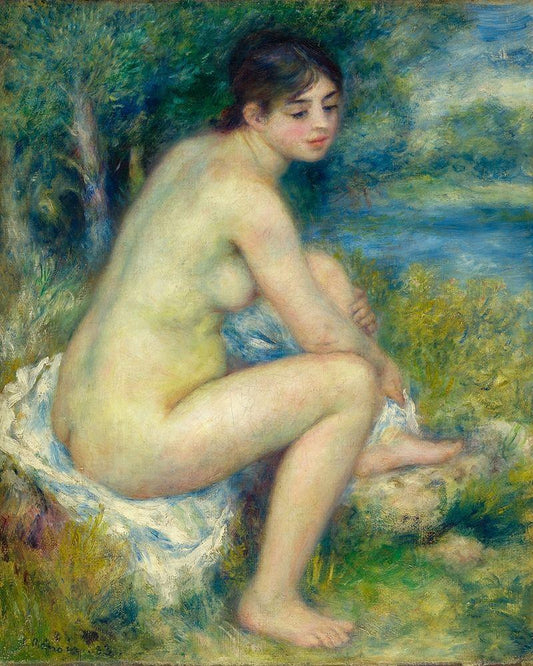 Nude Woman in a landscape 1883 White Modern Wood Framed Art Print with Double Matting by Renoir, Pierre-Auguste