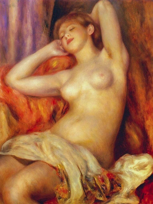The Sleeping Bather White Modern Wood Framed Art Print with Double Matting by Renoir, Pierre-Auguste
