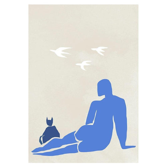 Woman and Cat Black Modern Wood Framed Art Print with Double Matting by Artographie Studio