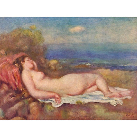 Sleeping by the sea Black Modern Wood Framed Art Print with Double Matting by Renoir, Pierre-Auguste
