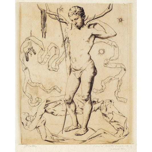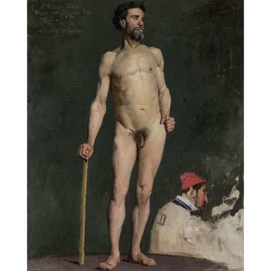 Study of a Male Nude Leaning on a Staff Black Modern Wood Framed Art Print with Double Matting by Weir, J Alden