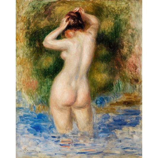 Bather Gazing at Herself in the Water 1910 Black Modern Wood Framed Art Print with Double Matting by Renoir, Pierre-Auguste