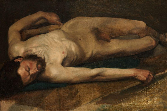Male Nude White Modern Wood Framed Art Print with Double Matting by Degas, Edgar