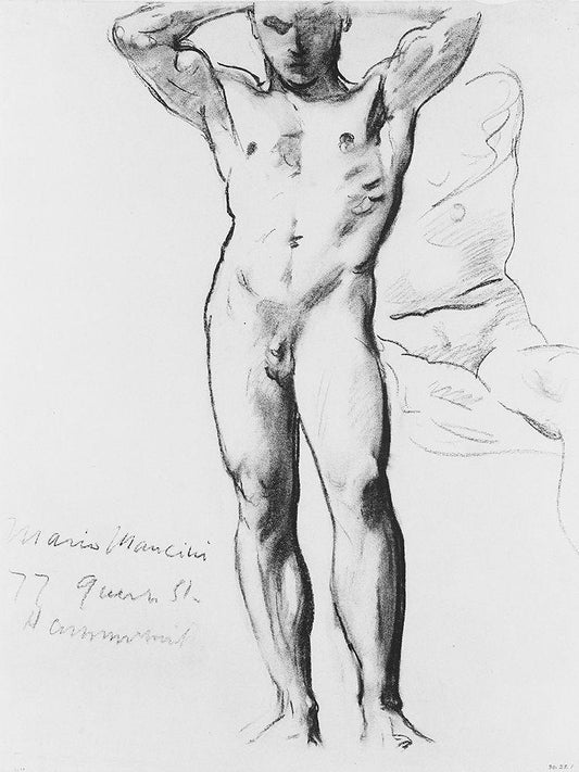 Man Standing, Hands on Head White Modern Wood Framed Art Print with Double Matting by Sargent, John Singer