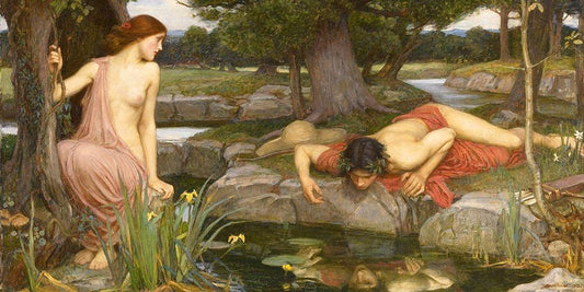 Echo and Narcissus White Modern Wood Framed Art Print with Double Matting by Waterhouse, John William