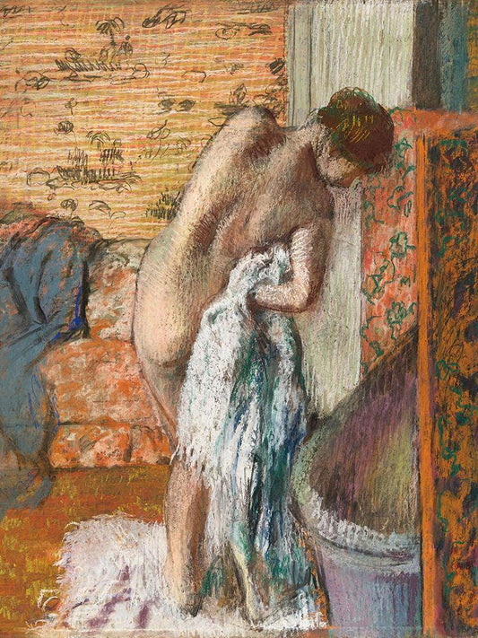 After the Bath, Woman Drying her Nape White Modern Wood Framed Art Print with Double Matting by Degas, Edgar