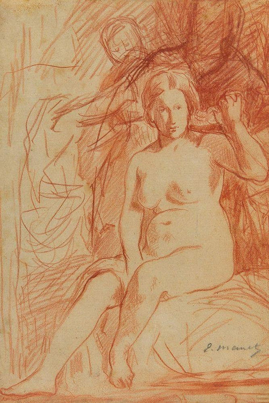 Seated Nude White Modern Wood Framed Art Print with Double Matting by Manet, Edouard
