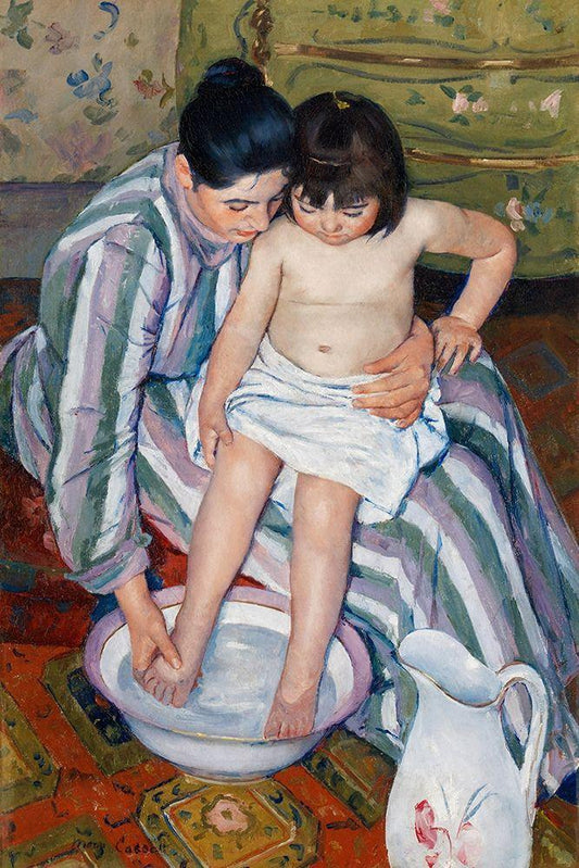 The Childs Bath White Modern Wood Framed Art Print with Double Matting by Cassatt, Mary