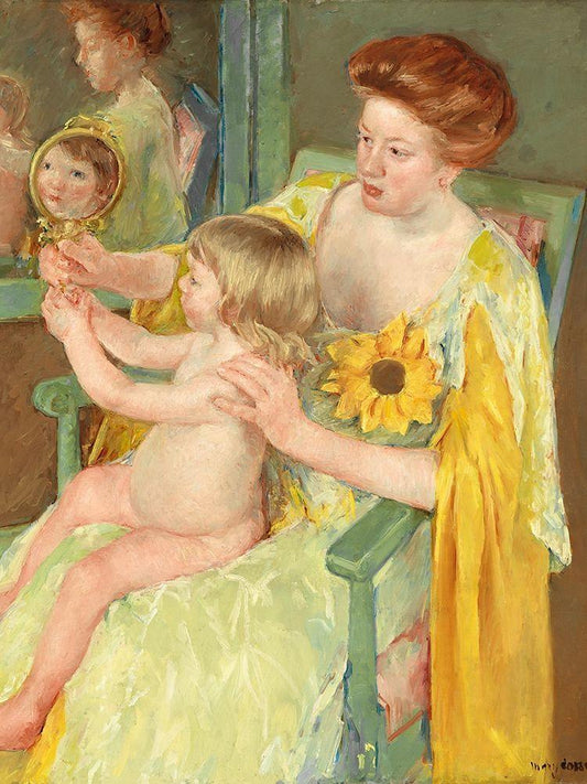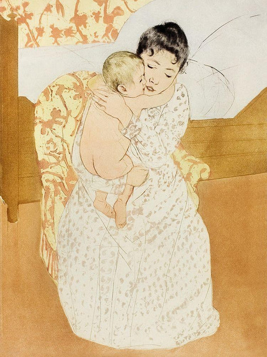 Mother and Child White Modern Wood Framed Art Print with Double Matting by Cassatt, Mary
